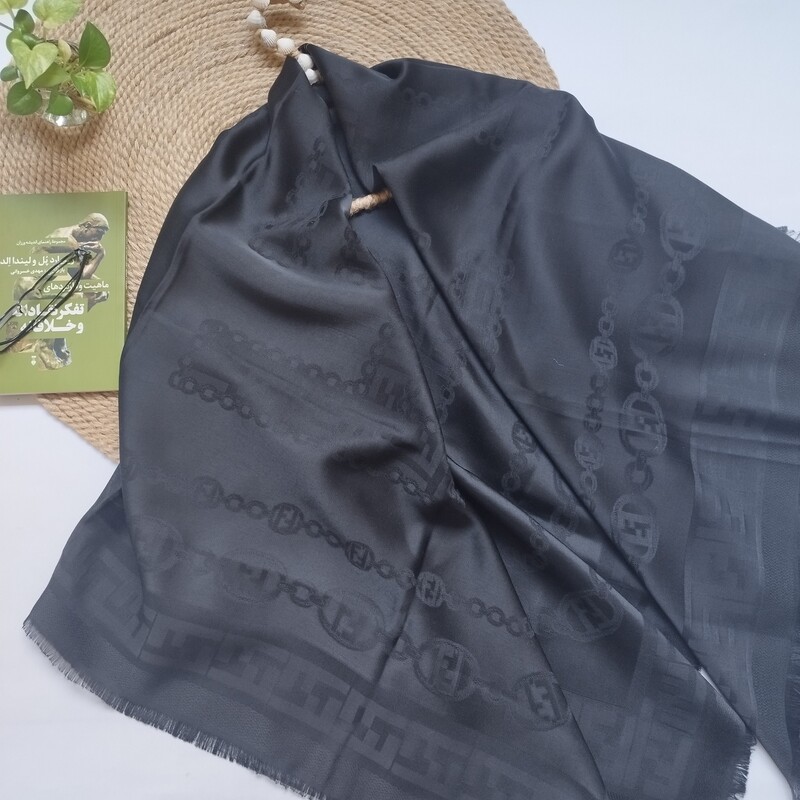 روسری مشکی ژاکارد دو رو دور ریش قواره ۱۴۰ با کیفیت عالی مجلسی طور دو طرح تصویر رنگ بور نیست اصلا قبل ثبت موجودی گرفته شود