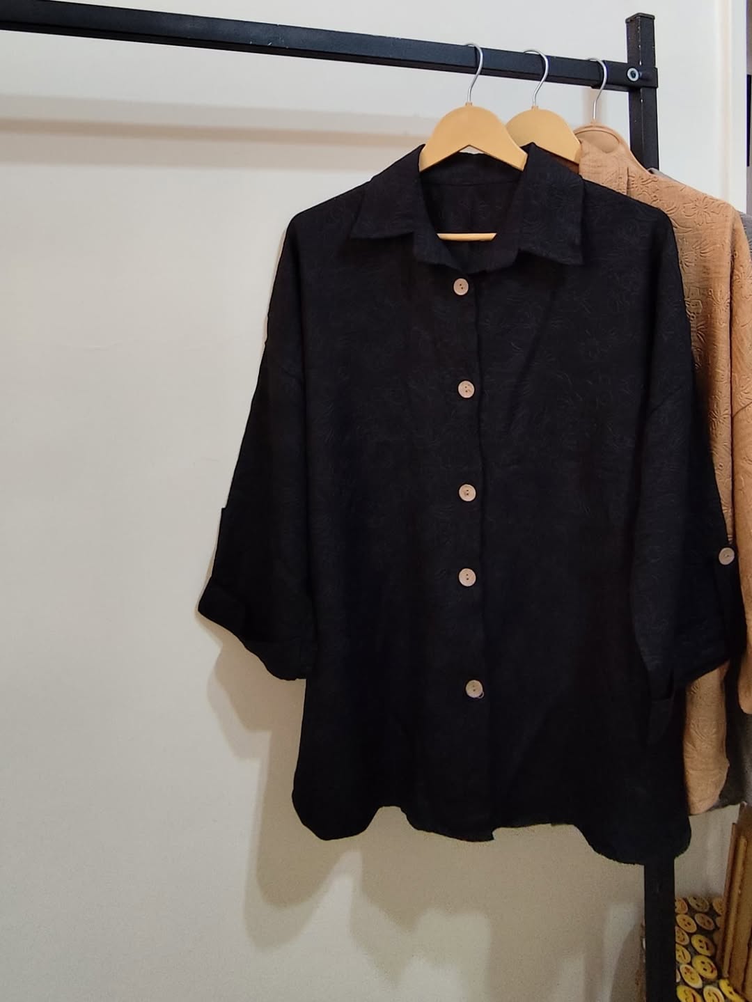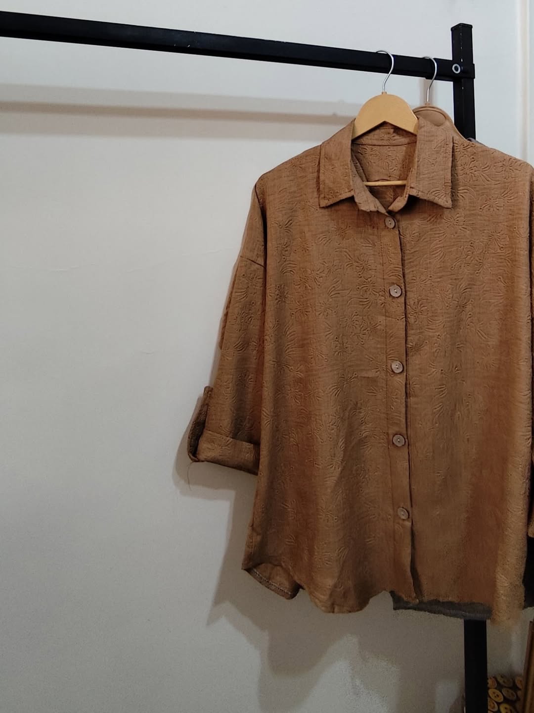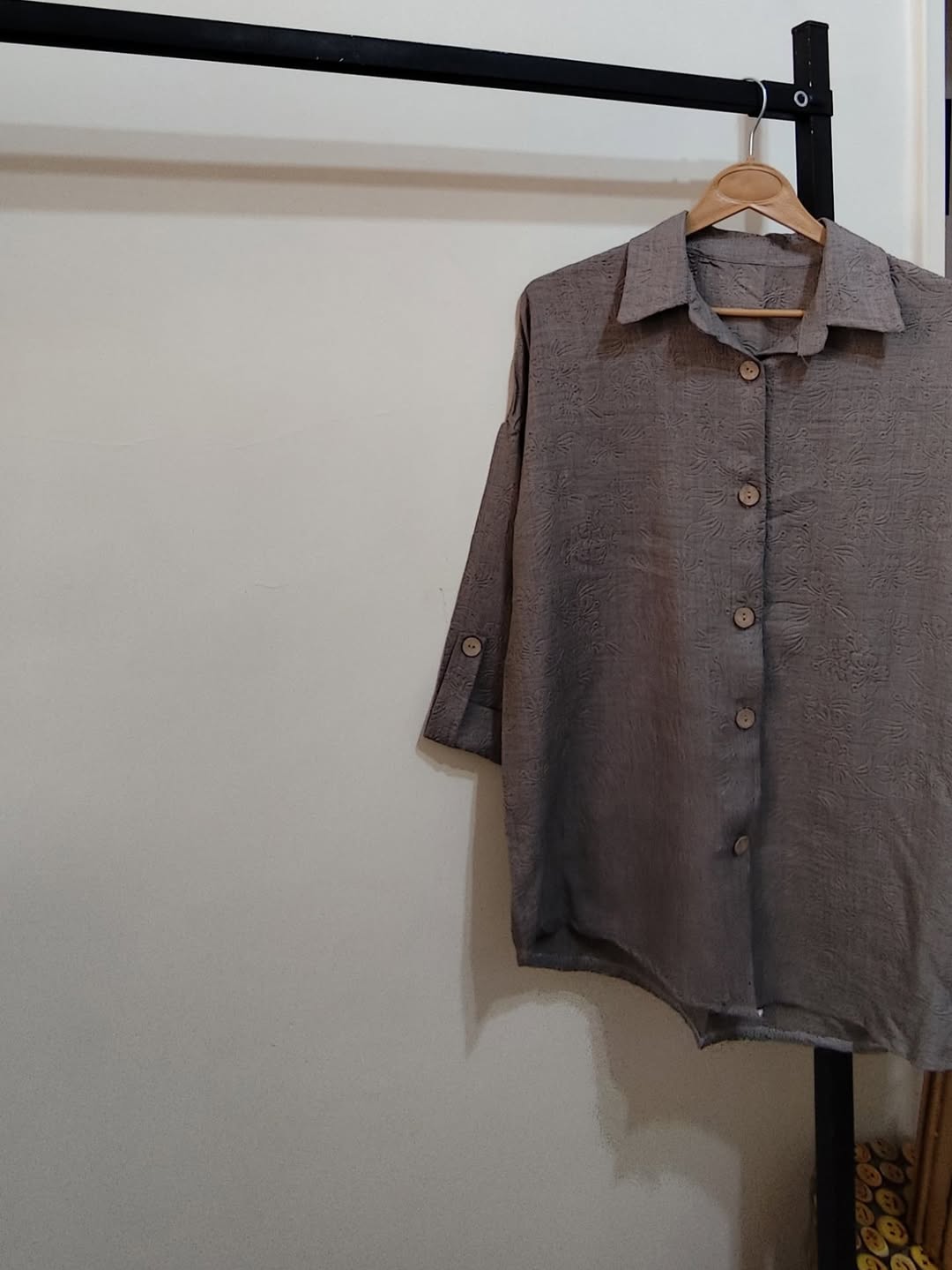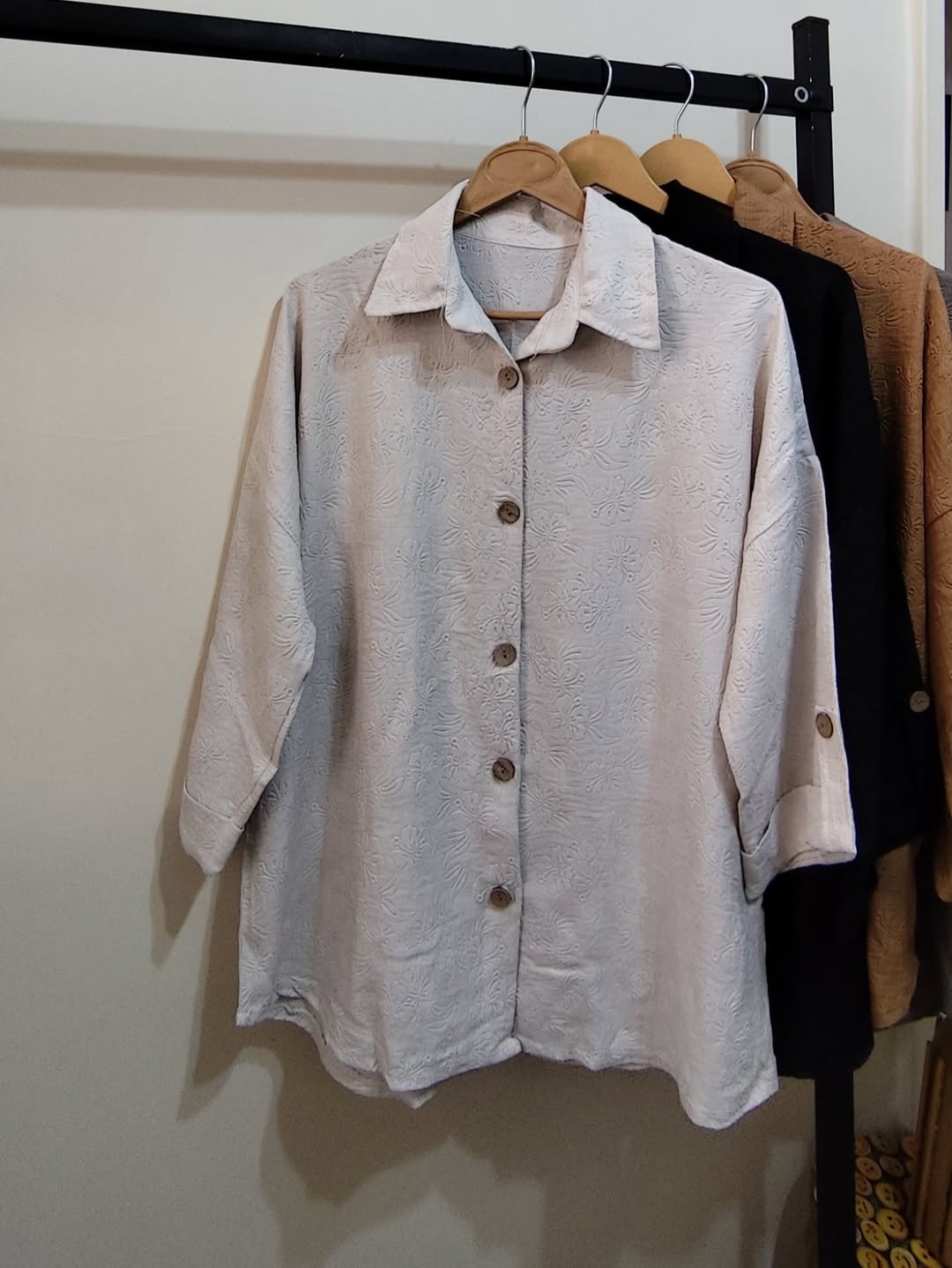 شومیز گل برجسته گازوئیلی زنانه فری سایز تا ۴۸