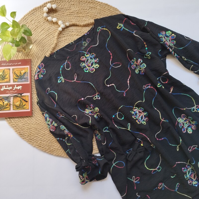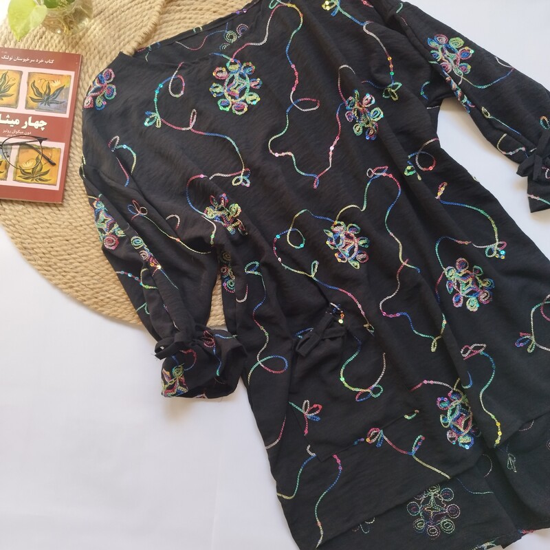 تونیک محرمی خامه دوزی پولک دوزی پشت بلند فری سایز تا 46