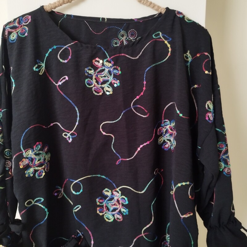 متاسفانه این کالا در حال حاضر موجود نیست. میتوانید از طریق لیست بالای صفحه، از محصولات مشابه این کالا دیدن نمایید.تونیک خامه دوزی پولک دوزی جنس ابرو بادی اعلا جیب فانتزی آستین کشدار پشت بلند فری سایز تا۴۶ رنگ مشکی قبل از ثبت موجودی حتما گرفته شود
