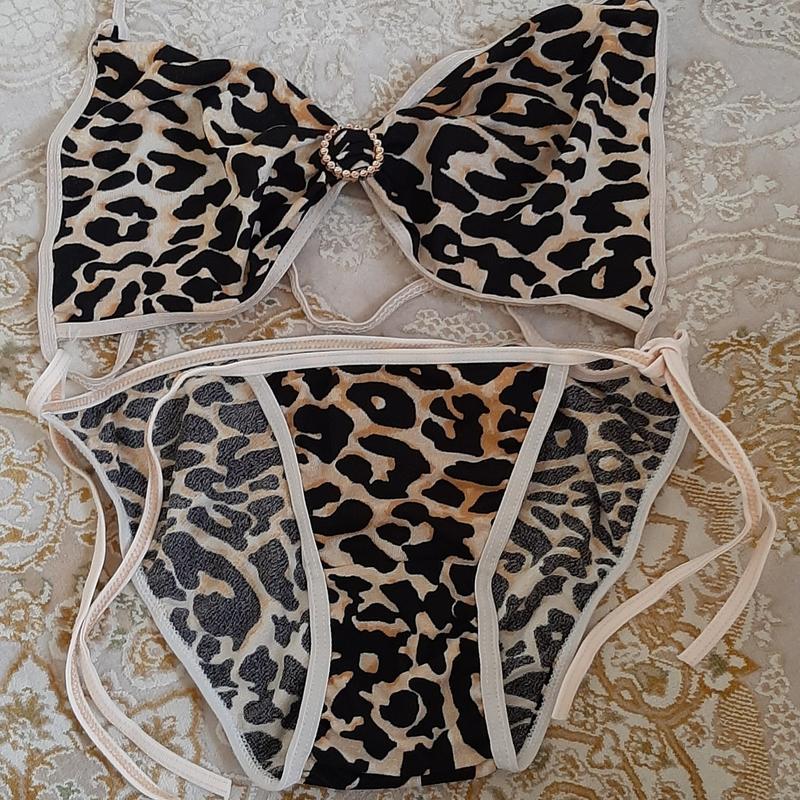 ست شورت و سوتین پلنگی بنددار گرهی جنس کرپ کش نرم و راحت و بادوام فری سایز فانتزی